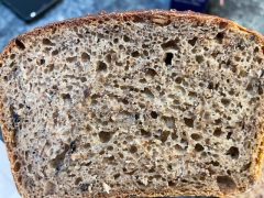 Nutritional yeast can breaks down the gluten. This break down of gluten makes it hard to manage the dough if the hydration is too high. It is why I suggest a pre-shape even though this is a tin loaf. Without it you might get a flat top to your tin rather than a gentle dome but it wont affect the flavour. If the gluten is degraded by adding the nutritional yeast the tin will still hold the bread up. So basically don’t worry! The nutritional yeast is inert and will have no ‘rising’ effect on the bread, that is all in the fermentation so don’t reduce your starter in the mistaken view that you are adding a baking yeast – you are not. But this is a fast rising bread, especially if using stoneground white as well as the home milled flour blend. So by all means reduce the amount of starter if you want to slow the process down to fit your time schedule.