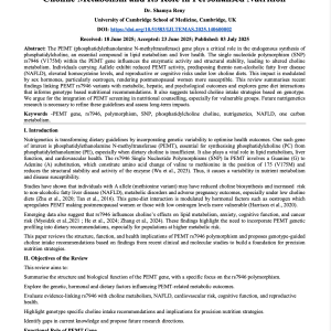 Nutrigenetic Impact of PEMT Gene Polymorphism Rs7946 On Choline Metabolism and Its Role in Personalised Nutrition